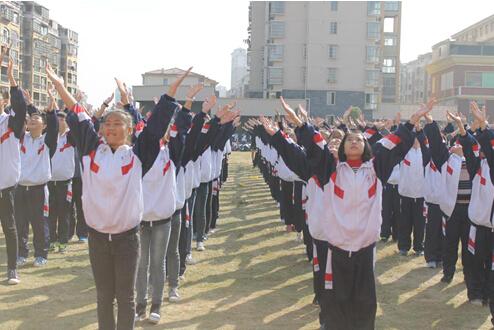 主持人宣布運動會開幕后,各年級體操表演比賽開始,他們著裝整齊,動作規范,成為運動場一道靚麗的風景。