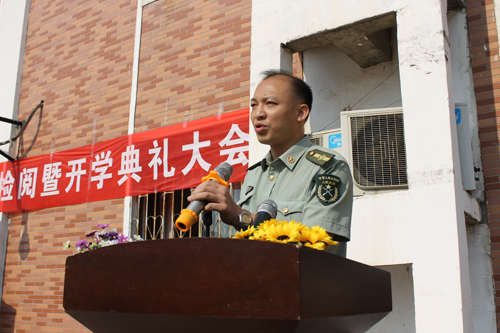 隨后,省人民武裝學院江濤總隊長講話,學院人民武裝部部長周圣華同志作軍訓總結,學工處處長周艷萍宣讀表彰決定,院領導向參訓部隊贈送了錦旗、向受表彰的優秀中隊、學員頒獎并合影留念。