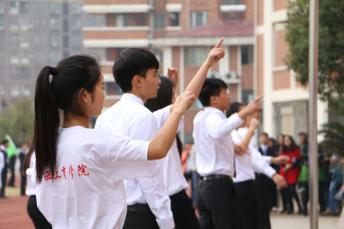 歌舞表演完畢,曠強軍副院長致開幕詞,他指出,每年一屆的田徑會是對學校體育水平的集中檢閱,是對師生身體素質等綜合素質的考驗,更是各參賽單位團隊精神、頑強拼搏精神的綜合體現。他希望全體參賽運動員賽出風格、賽出水平,盡享運動的快樂,更寄望全校師生積極投身體育鍛煉,擁有健康的體魄,健康工作、輕松學習。