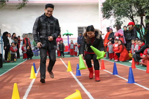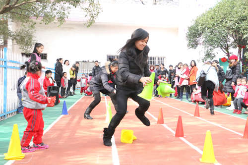 本次活動內容共包括教學展示、老師舞蹈表演、親子游戲以及包餃子四個內容。其中親子游戲掀起了本次活動的高潮,在親子游戲中,寶寶和家長們共同完成路障游戲任務,家長的著急,幼兒的認真,惹得場外的觀眾哈哈大笑,活動場地上隨處可見孩子和家長爽朗的笑聲和有力的加油聲。 每一輪游戲結束后,冠軍組的家庭和參與組家庭都會贏得場外的觀眾的喝彩。整個活動中,家長、孩子、老師臉上都洋溢著幸福快樂的笑容。