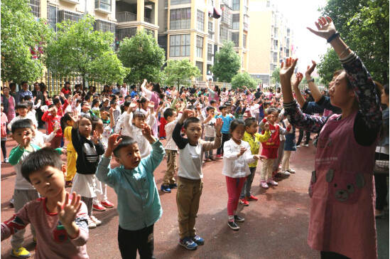 活動開始,在幼兒園老師的帶領(lǐng)下,孩子們隨著動感歡樂的音樂翩翩起舞,向家長們展示韻律操表演。小朋友們認(rèn)真的跳著,不時變換著姿勢和花樣。家長們仔細(xì)觀看孩子們的表演,不時的給與熱烈的掌聲并拍照留念。