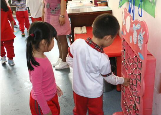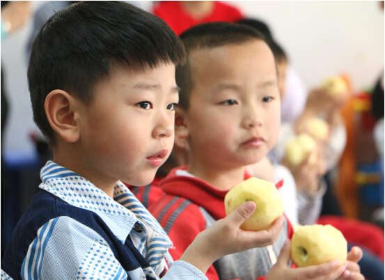 戶外活動結(jié)束后,各班幼兒在領(lǐng)隊老師的帶領(lǐng)下有序進(jìn)入教室。隨后,家長跟隨園長老師們?nèi)逃^摩幼兒入廁、洗手、喝水、吃水果的常規(guī)活動。各班有序組織幼兒分組入廁、洗手、喝水、吃蘋果,主班老師在活動室和盥洗室門口隨時提醒幼兒有序排隊,并觀察其接水量等,整個活動環(huán)節(jié)沒有你擠我、我碰你的現(xiàn)象,保證了孩子的安全,每個環(huán)節(jié)都在教師的組織下井然有序進(jìn)行。