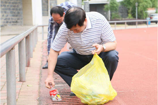 儀式結束后,劉明初參與校園大清掃