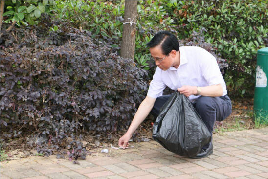 儀式結束后,劉富林參與校園大清掃