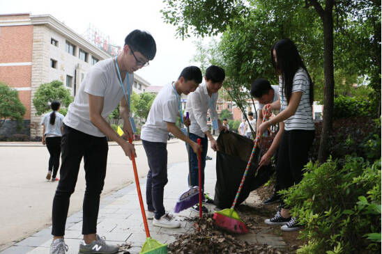 儀式結束后,曠強軍參與校園大清掃