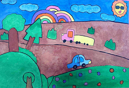 比賽現(xiàn)場氣氛熱烈,孩子們熱情高漲。孩子們經(jīng)過認真的構思后,紛紛拿起畫筆,仔細的描繪與涂彩。一個多小時后,一幅幅充滿童趣、充滿活力的畫誕生了。孩子們的繪畫作品內(nèi)容豐富,形式多樣。有描繪學校的,有表現(xiàn)體育活動的,還有反映戶外郊游的……作品構思巧妙、色彩鮮艷。