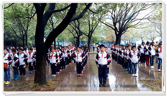 升旗儀式開始前,小學部全體同學穿著統一的校服,佩戴鮮艷的紅領巾,有序地從教學樓魚貫而出,并迅速的在操場上排好整齊的方隊。
