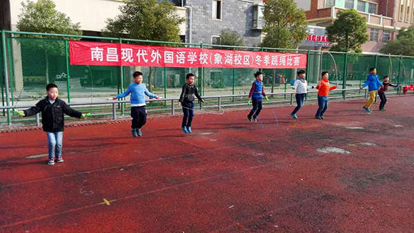 為了貫徹“健康第一”的指導思想,響應國家“陽光體育”的號召,激發學生的體育興趣,提高學生的運動技術水平。讓學生形成新的健康觀念和終身體育意識,培養學生之間的團結、合作精神與積極進取精神,增強班級間的友誼與班級凝聚力,活躍校園文化生活。南昌現代外國語學校(象湖校區)12月22日下午舉行了2—6年級學生冬季跳繩比賽。