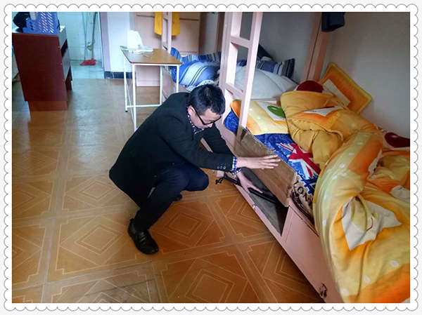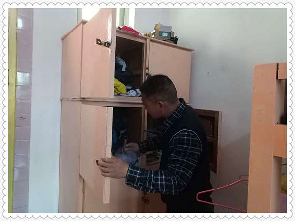 檢查中,檢查組成員與生活老師對學生宿舍每個角落進行認真仔細的查看,包括箱、柜、床等角落,任何有可能藏匿管制刀具、易燃易爆物品地方都不放過。