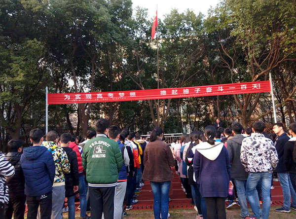 接下來楊校長講話,他對全體高三師生提出了希望與要求,希望老師們不負家長、學校和社會,助學生成就夢想,把最有效的得分方法教給學生,為學生奮斗100天。希望同學們樹立信心、發揮所長、端正態度、磨煉意志;講究科學的方法,積極主動的查缺補漏、堅持煅煉并注意勞逸結合,一份耕耘一份收獲。楊校長最后以蒲松齡對聯與學生共勉:有志者事競成,破釜沉舟,百秦關終屬楚,苦心人天不負,臥薪嘗膽三千越甲可吞吳。