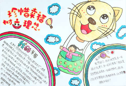 當日,四年級組10個班477名學生,開展了主題為“珍惜幸福生活,樹立遠大理想”手抄報比賽活動。活動在各班主任的精心組織和同學們的積極參與下,一份份寓意匪淺“珍惜幸福生活,樹立遠大理想”手抄報出現在師生的面前。這些手抄報匯聚了同學們的心血,是他們用自己手中的畫筆或寫或畫地記錄下自己所了解的清明風俗或英雄故事,并以自己的方式解讀清明、走近革命烈士。同學們把自己繼承先烈遺志,珍惜幸福生活,樹立遠大理想,立志為實現“中國夢”而奮斗的愿望都描繪在自己的手抄報中。