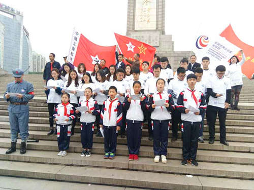 4月11日上午南昌現代外國語學校(迎賓校區)部分中小學生在校領導的帶領下,乘車前往南昌八一起義紀念塔下參加了“為紀念建軍90周年,尋訪八一征程路中國夢鐵軍情”活動。