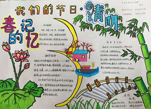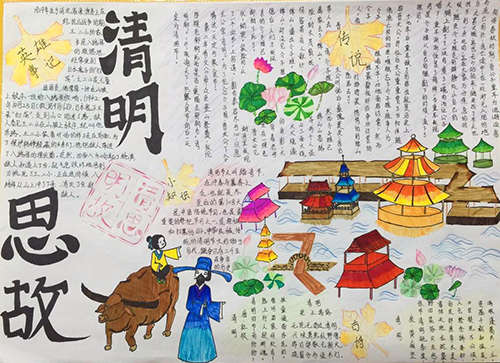 “我們的節日·清明”節日小報創作作品要求以清明節所蘊含的傳統文化內涵為主題,內容精煉、圖文并茂,色彩搭配合理、作品有創意、報頭新穎、貼切。小學低年級以繪畫展現為主;小學高年級以文字采集為主;中學生以表現自身感悟和創作技巧為主。