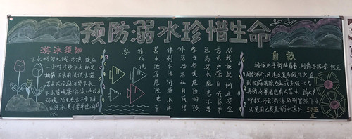 活動中,學生在班主任的悉心指導下,緊緊圍繞主題,廣泛搜集資料,積極進行版面設計、圖案構思和內容創意。各班級所出的“珍愛生命 預防溺水”黑板報不僅主題鮮明,內容豐富,圖文并茂,而且版面清新活潑,實現了融知識性、教育性、時代性于一體,生動展現了“珍愛生命,預防溺水”的真諦。于潛移默化之中增強了學生防溺水的意識、知識及能力,起到了細節育人、潤物無聲的教育作用。
