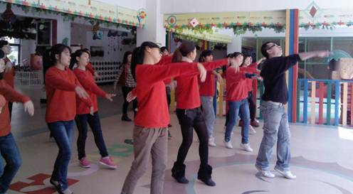 為了進一步提高幼兒教師的舞蹈水平,增強教師的藝術修養,提高幼兒園藝術教育水平,11月14日中午,江西迪斯尼幼兒園和園外園幼稚園聯合組織舉辦了幼兒教師舞蹈培訓,兩園共26名幼兒教師參加了培訓。
