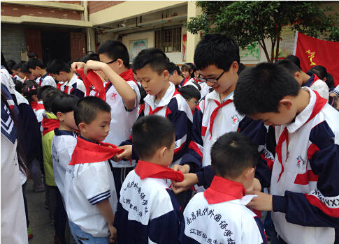 5月27日下午,南昌現代外國語學校(象湖校區)在操場上舉行少先隊新隊員入隊儀式。隊員們歡聚在一起,共同見證這一激動人心的時刻。
