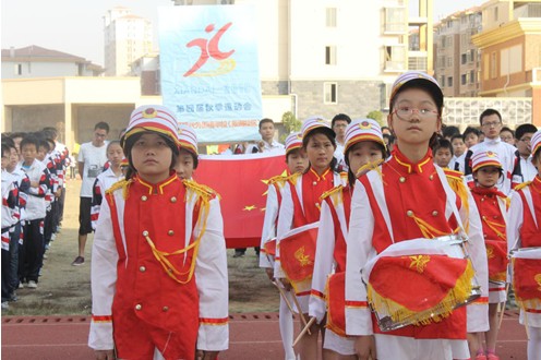 開幕式上,舉行了隆重的入場儀式。各班級運動員方陣相繼進場,氣氛緊張而又熱烈。首先入場的是學(xué)校鼓樂隊和彩旗隊。隨后,由各班運動員代表組成的方隊身著統(tǒng)一的服裝,邁著整齊的步伐,手舉標語,高喊口號,精神飽滿的步入會場,充分展示了“現(xiàn)外”學(xué)子的風采。開幕式最后,各班運動員進行了會操表演。